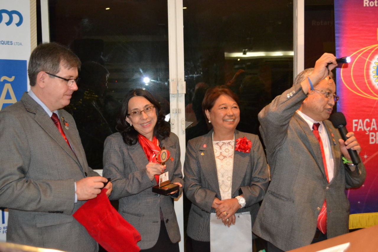 Durante o jantar festivo, a presidente Sonia Mara agradeceu a presença do casal governador e demais autoridades rotárias, além de ressaltar a importância de estar a frente do clube, dando continuidade aos trabalhos já desenvolvidos, com muita satisfação e determinação para continuar fazendo o Rotary brilhar na comunidade.